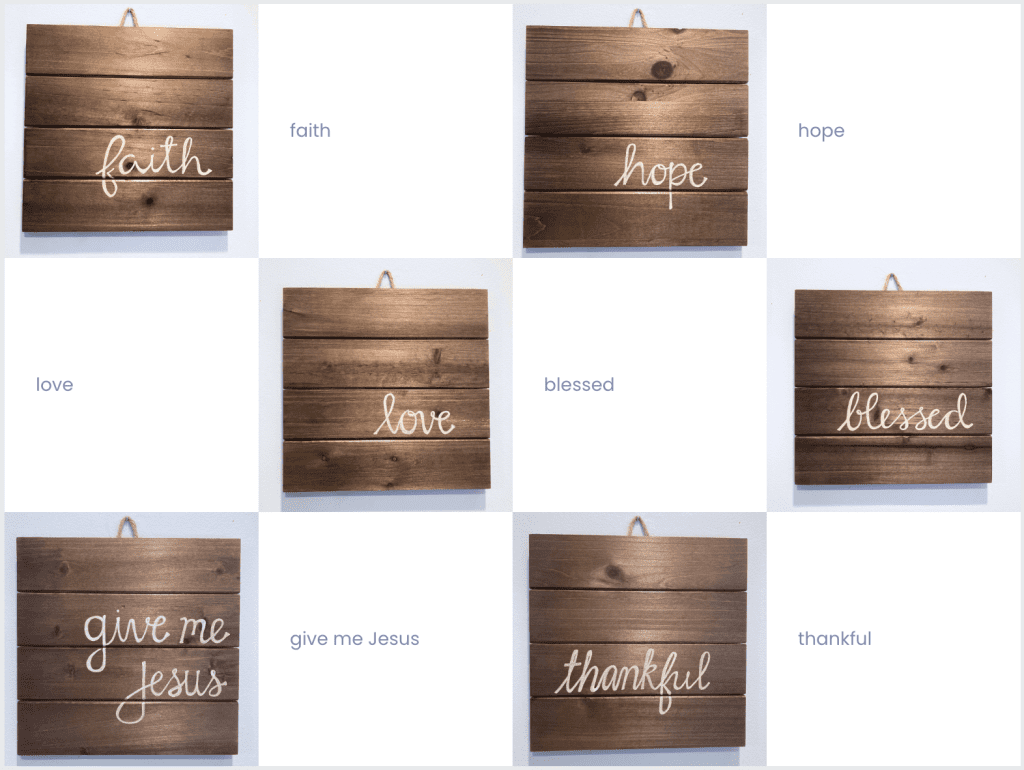 Your last name, Be still, Grace, He is able, Grateful, Trust,