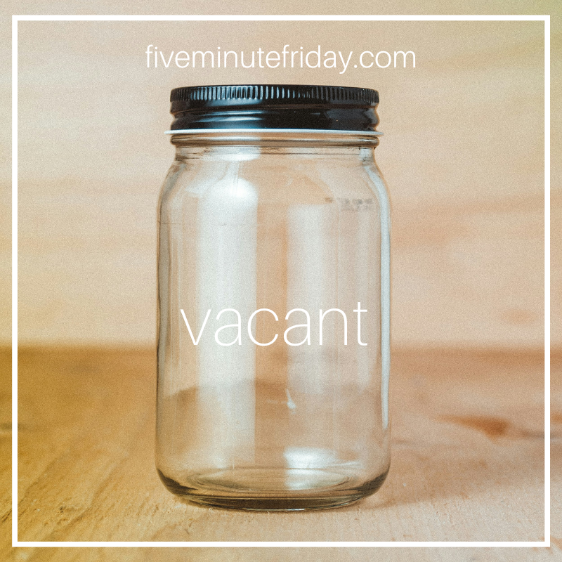 Join us with your own five-minute freewrite on the prompt, VACANT, below, then visit your link-up neighbor to read their post and leave an encouraging comment below: