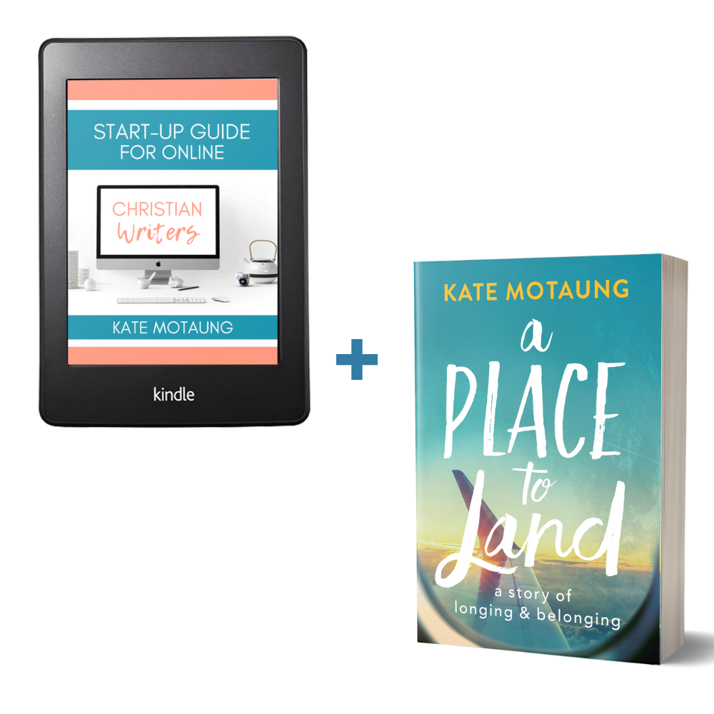 This book bundle includes a digital copy of the Start-Up Guide for Online Christian Writers and a paperback copy of A Place to Land: A Story of Longing and Belonging, by Kate Motaung.